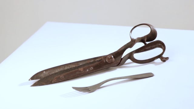 Krojaške škarje in aluminijasta vilica